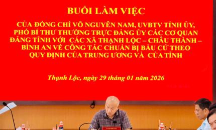 Đồng chí Võ Nguyên Nam, Ủy viên Ban Thường vụ Tỉnh ủy Phó Bí thư Thường trực Đảng ủy các cơ quan Đảng tỉnh, đã có buổi làm việc với các xã Châu Thành, Bình An và Thạnh Lộc về công tác chuẩn bị bầu cử đại biểu Quốc hội khóa XVI và đại biểu HĐND các cấp
