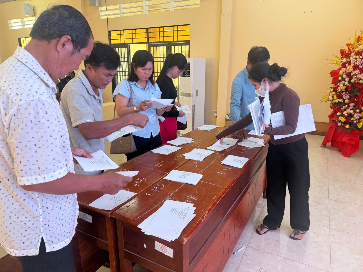 Hội nghị cũng dành thời gian trao đổi, giải đáp những tình huống phát sinh trong quá trình tổ chức bầu cử nhằm giúp các thành viên Tổ bầu cử nắm vững quy trình, thực hiện đúng quy định pháp luật. Bên cạnh đó, Hội nghị đã cho các Tổ bầu cử thực hành các bước kiểm phiếu và nhập kết quả kiểm phiếu.