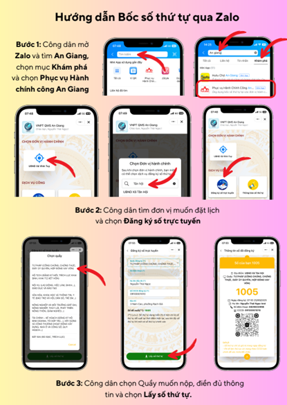 Người dân có thể thực hiện theo các bước hướng dẫn sau để truy cập vào ứng dụng Hệ thống lấy số tự động qua Zalo khi thực hiện thủ tục hành chính.