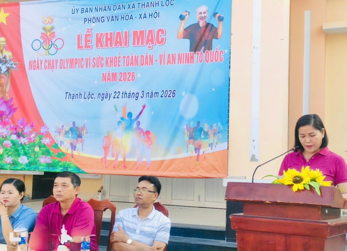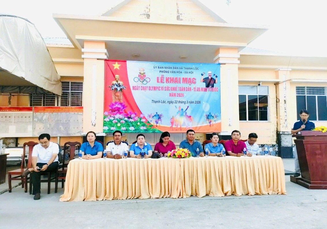 Sáng ngày 22/3/2026, tại sân Ủy ban nhân dân xã, Ủy ban nhân dân xã Thạnh Lộc đã long trọng tổ chức “Ngày chạy Olympic vì sức khỏe toàn dân - Vì an ninh Tổ quốc” năm 2026, thu hút sự tham gia đông đảo của cán bộ, công chức, viên chức, lực lượng vũ trang, đoàn viên thanh niên và nhân dân trên địa bàn.